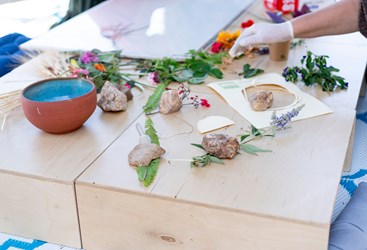 חומרים טבעיים ומקומיים הופכים תחת ידיה של ג'ואנה למנדלה טבעית, מקומית וחד פעמית שנבנית במהלך הארוע
